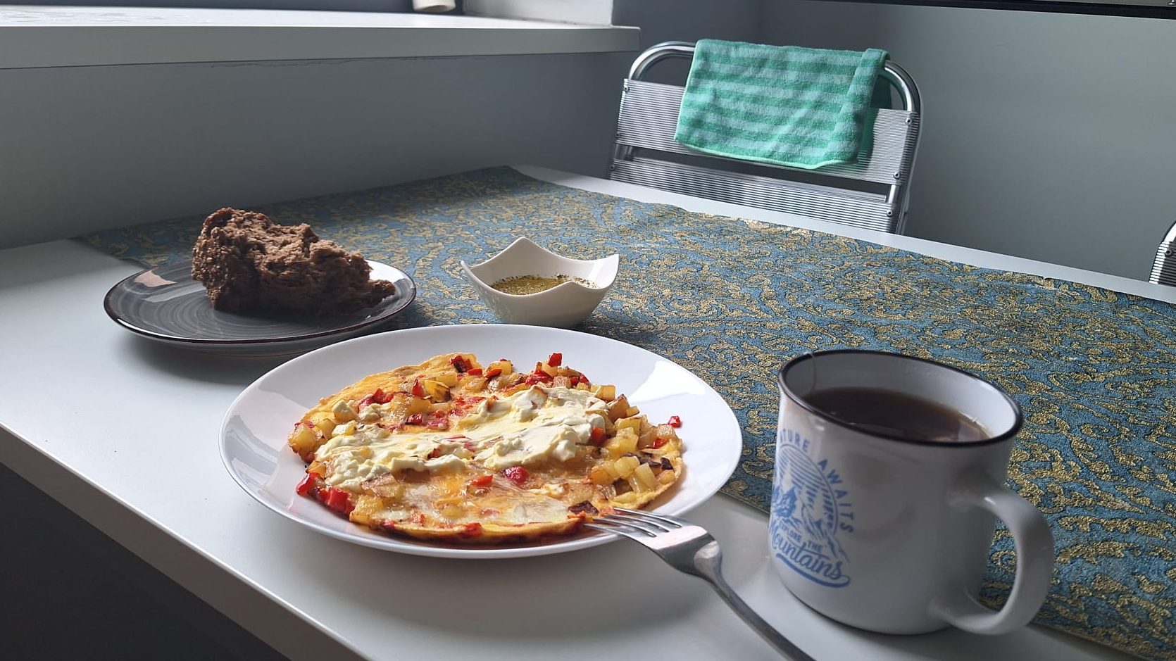 In the mean time potato is still not ready so I crack the eggs in to a bowl and mix them nice.